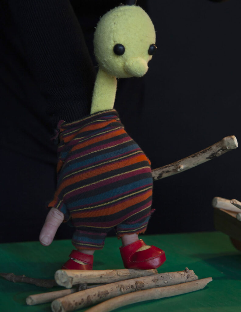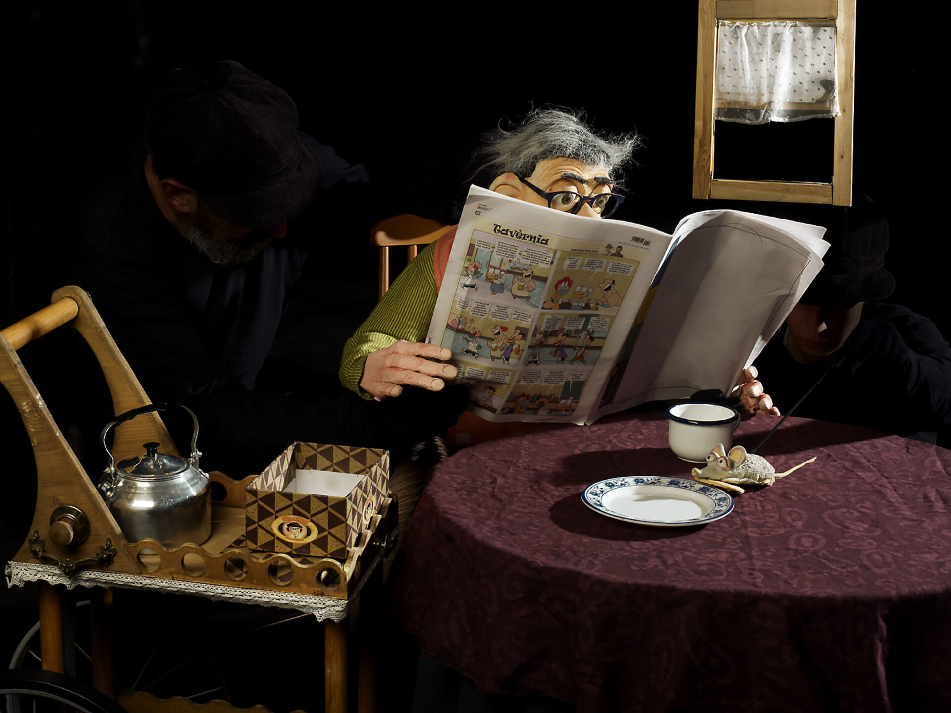 El protagonista és un titella de mida humana manipulat per dos titellaires.